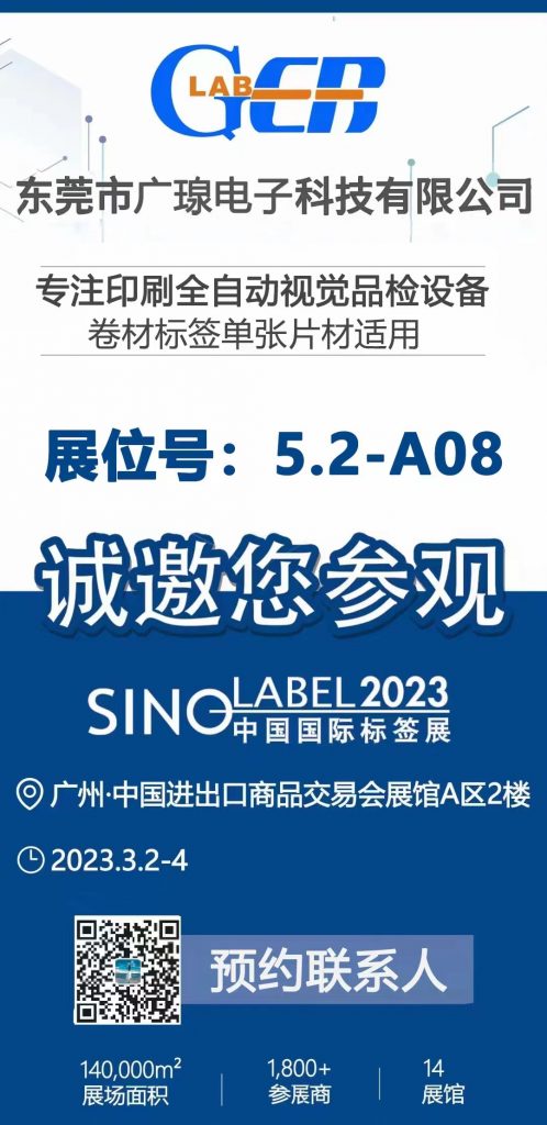 中國國際標簽展即將于2023年3月2日-3月4日在廣州·中國進出口商品交易會展館A區舉辦。東莞市廣瑔電子科技有限公司(廣瑔視覺)標簽檢品機產品將在此次標簽展上進行展示。